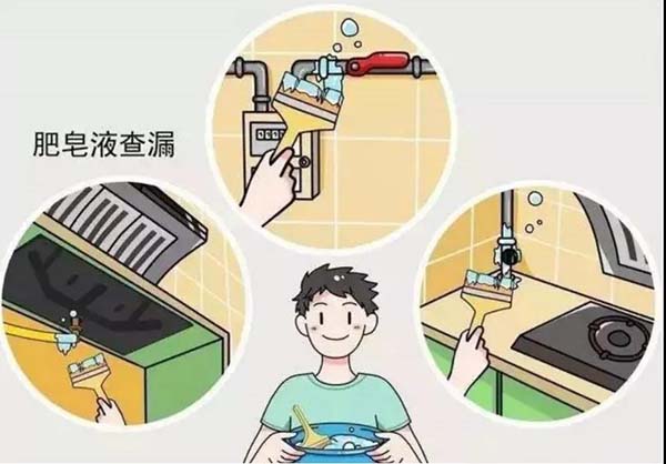 檢查方法:①通過氣味判斷,一旦漏氣,室內會產生臭雞蛋、汽油或油漆味;